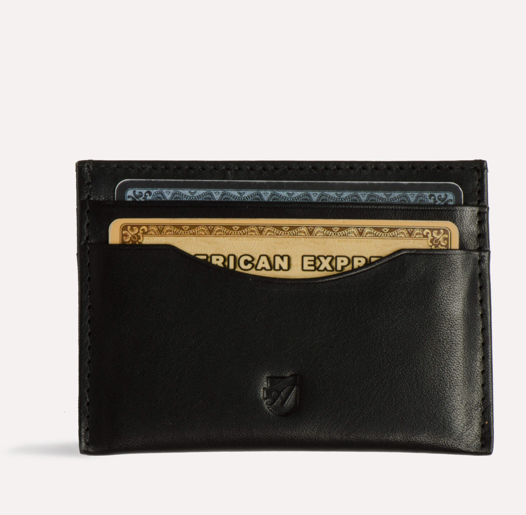 Our slim card wallet is our "European style" minimalist wallet. This type of model is one of the most popular styles for holding your credit cards and essentialis on a daily basis as it basically eliminates holding bills. The main inner pocket is RFID blocking. It holds 4 cards in 4 slots on both sides of the wallet and holds an additional 2,3 cards inside the main pocket.